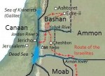 The book of Deuteronomy is set in the lowland (below sea level) at the north end of the Dead Sea, where the Israelites are encamped on the east bank of the Jordan River. Moses speaks at length to the people he has led for 40 years. Then at the end of the book, following God’s instructions, he climbs Mount Nebo in the Pigsah range of mountains near the border of Moab.1