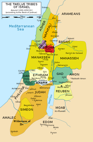 The tribe of Reuven is part of the northern kingdom, but its members live in the land east of the Dead Sea, which is sometimes ruled by the Moabites who also live there.12  The tribe of Shimon occupies an enclave within the southern desert of the Kingdom of Judah, and is “scattered” only in the sense that all desert nomads are scattered.13  The tribe of Levi consists of hereditary priests and other religious functionaries.  In the book of Joshua, the Levites are assigned 48 towns in the territories allotted to the other tribes, including a few in the territory of Shimon.14  So the Levites are indeed scattered, but they are not entirely split apart from the Shimonites.