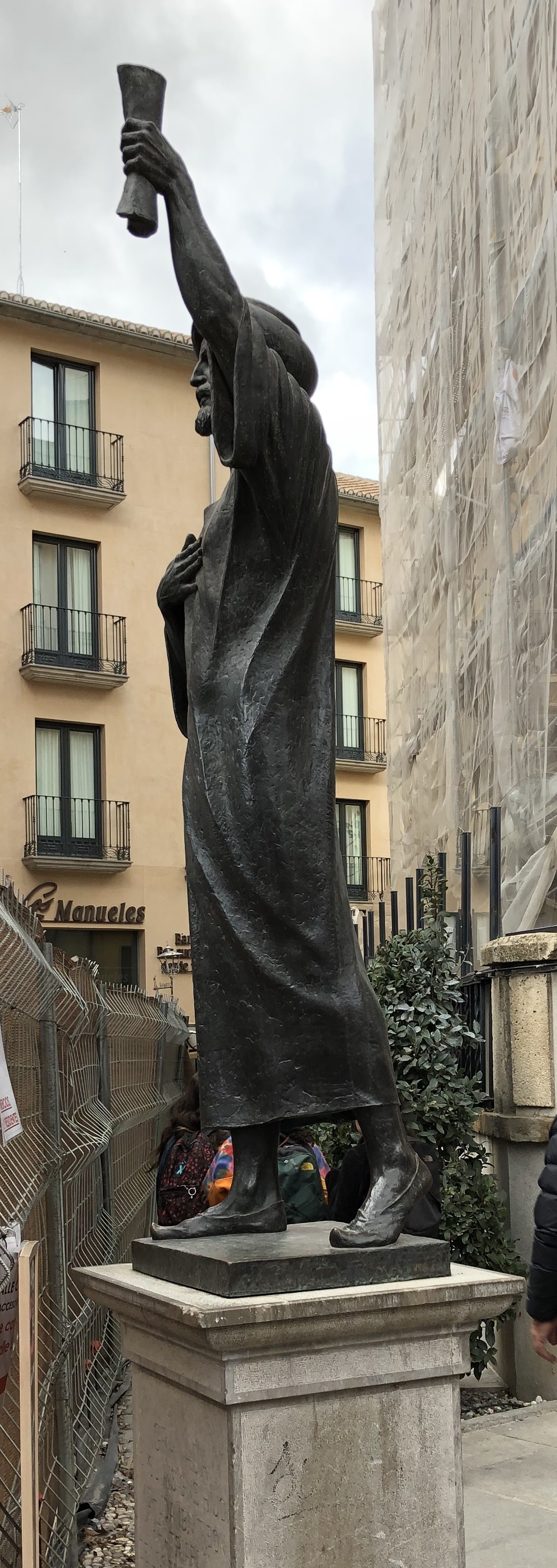 This week we are in Granada, where the Jewish population in 1490 was about 20,000. Now there are four Jewish families living in Granada, according to a woman who set up a private Jewish museum on the ground floor of her house. The only other Jewish sight in Granada is a modern sculpture2 of Yehudah ibn Tibon, a 12th-century scholar who translated several important Jewish books from Arabic into Hebrew.3