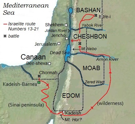 The first time, they marched up to Canaan’s southern border and then refused to cross.1 God decreed they must spend forty years in the wilderness, and then their children could try again. This time, the new generation of Israelites plans to travel through Edom and north along the east side of the Dead Sea, then enter Canaan by crossing the Jordan River near Jericho.