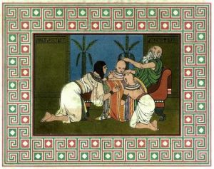 In the first deathbed scene, Jacob adopts Joseph’s two sons, Menasheh and Efrayim.