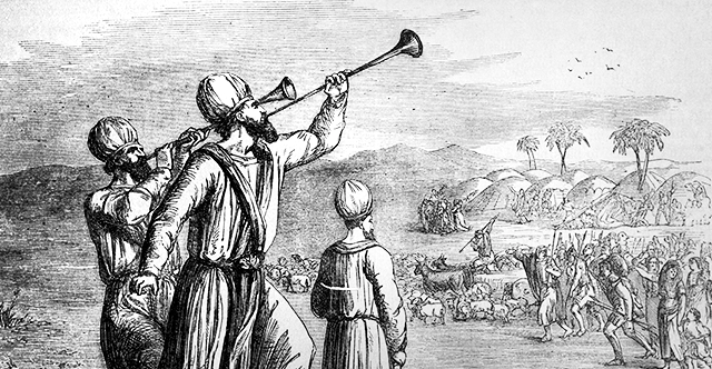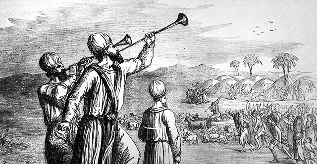 But then we learn that the signal of the divine cloud is not enough; God also calls for two silver trumpets. When a priest blows a single short blast, the leaders of the Israelites must assemble at the Tent of Meeting for instructions. A longer, trilling blast means that that the people must march.