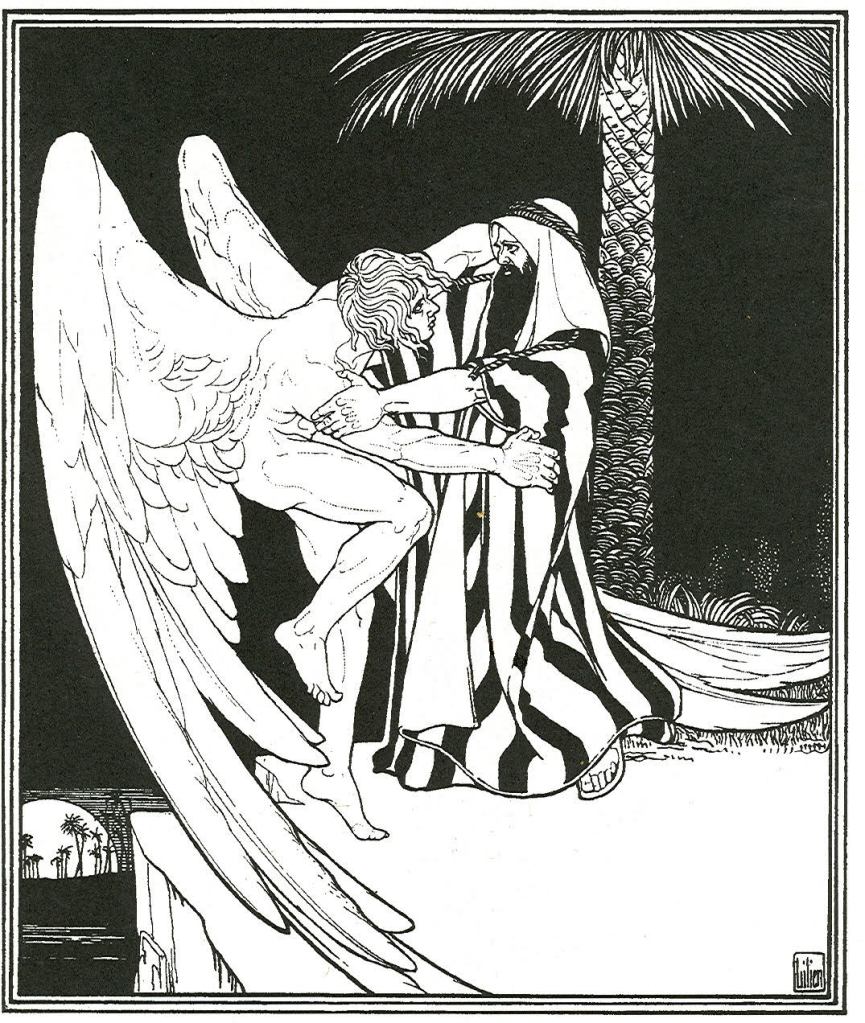 Some years later, Abraham hears God tell him to slaughter his son Isaac as a burnt offering. He neither argues with God, nor asks a single question. Isaac, a grown man, trusts his father and lets himself be bound on the altar. (Therefore Jews call this story the Akedah, the binding.) Only when Abraham’s knife is at his son’s throat does God call it off.3 But after God sends a ram as a substitute sacrifice, Isaac disappears from the story, and we never see him in the same place as his father again, not even at the funeral of Sarah, Abraham’s wife and Isaac’s mother. And although God blesses Abraham once more while the ram is burning, God does not speak to Abraham again after that.