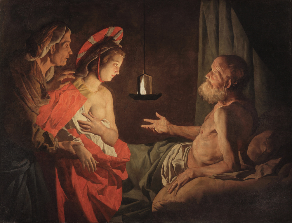 While King David’s men are off fighting the Philistines, David looks down from his rooftop and sees “a very good-looking woman” bathing. He finds out she is Bathsheba, another man’s wife, but he has her brought to his bed anyway. After he has impregnated her, he tries to get her husband to spend a night with her, but he fails. So David has her husband killed, and then marries her.13