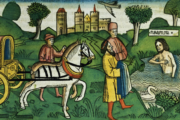 When he arrives at the prophet Elisha’s house in Samaria, he and his retinue halt, and he waits for the prophet to come out and greet him. But Elisha just sends out a messenger to tell the general: