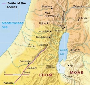 At the beginning of this week’s Torah portion, the Israelites camp within sight of the ridge that separates the desert of Paran from Canaan. Moses follows God’s instruction to send twelve scouts north to explore the land before the people march in and take it over. He tells the scouts to report back on the population, whether their towns are walls, what the soil is like, and whether there are woodlands. He finishes by asking them to bring back some fruit.1