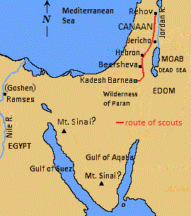 The scouts return carrying pomegranates, figs, and a gigantic cluster of grapes. When they give their report, the Israelites are alarmed to hear that there are large fortified cities in Canaan.2 Then the scouts go outside their instructions and give their own opinions on whether the Israelites will be able to conquer the land God promised to give them. Caleb says yes, but ten other scouts say no. (The twelfth, Joshua, is silent at this point.) The people despair and throw a tantrum, yelling that they would rather die or go back to Egypt than take one step into Canaan. Then everyone sees the glory of God appear as cloud and fire.