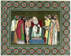 Joseph throws them into prison for three days, then confronts them again. As they talk among themselves, they do not know he understands every word when they agree that although they are not spies, they deserve punishment because they did not listen to Joseph pleading from the bottom of the pit 20 years before.
