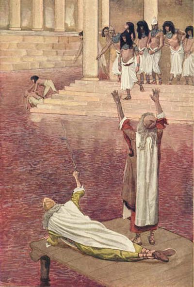After washing and dressing Aaron and his sons, Moses must make the first offerings on the new altar, and sprinkle some of the blood on both the altar and the five men.2 After Moses has made all the offerings, the remaining bread and the remaining meat from the second ram go to the men being ordained.